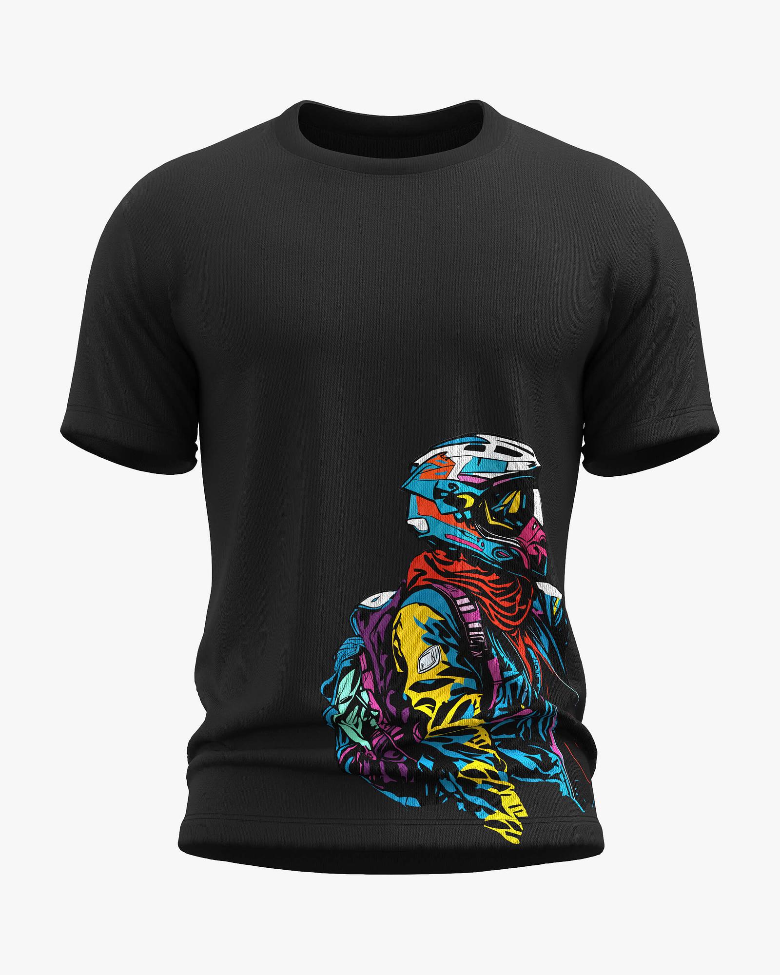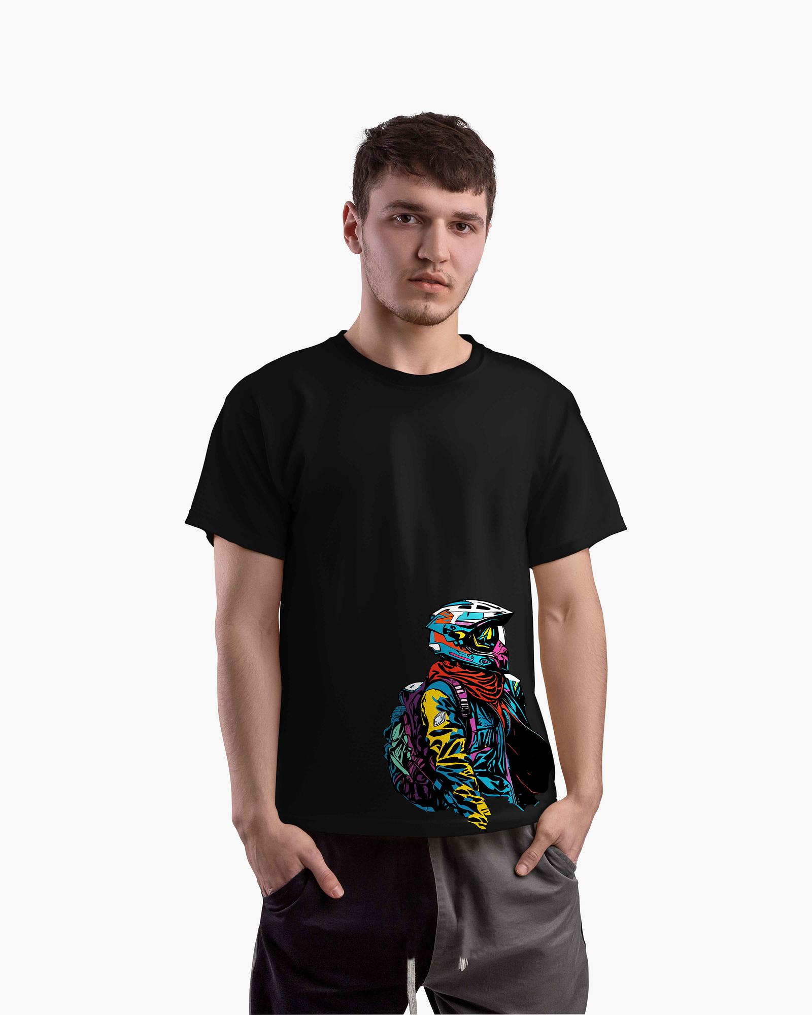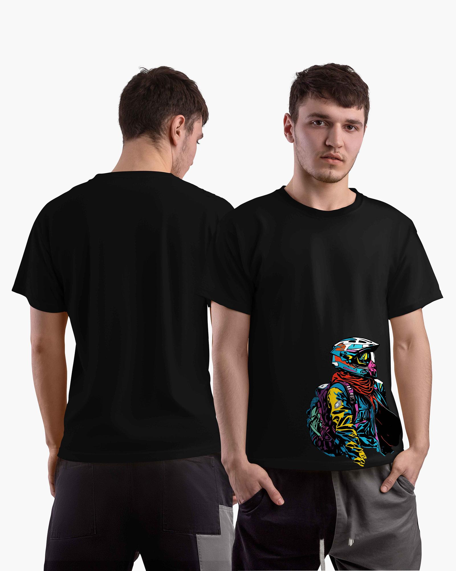 ₹ 549.0 MRP: ₹ 1247.0(56% OFF)An artsy and colorful bike rider t-shirt with bold graphics. Made of soft cotton fabric for comfort and vibrant expression. Great for urban riders and weekend chill.