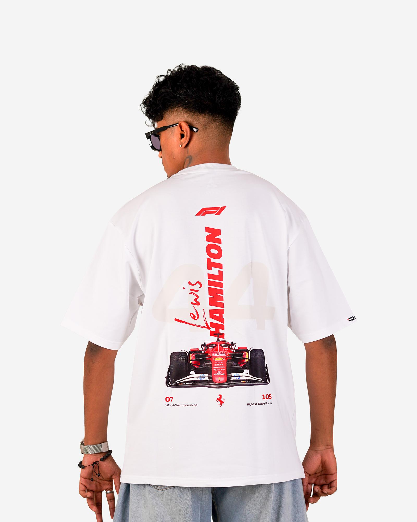 ₹ 628.95 MRP: ₹ 1699.0(63% OFF)Showcase speed and style with the Lewis Hamilton #44 oversized tee in white. Featuring his signature car design and stats, this tee merges F1 aesthetics with clean streetwear flair.