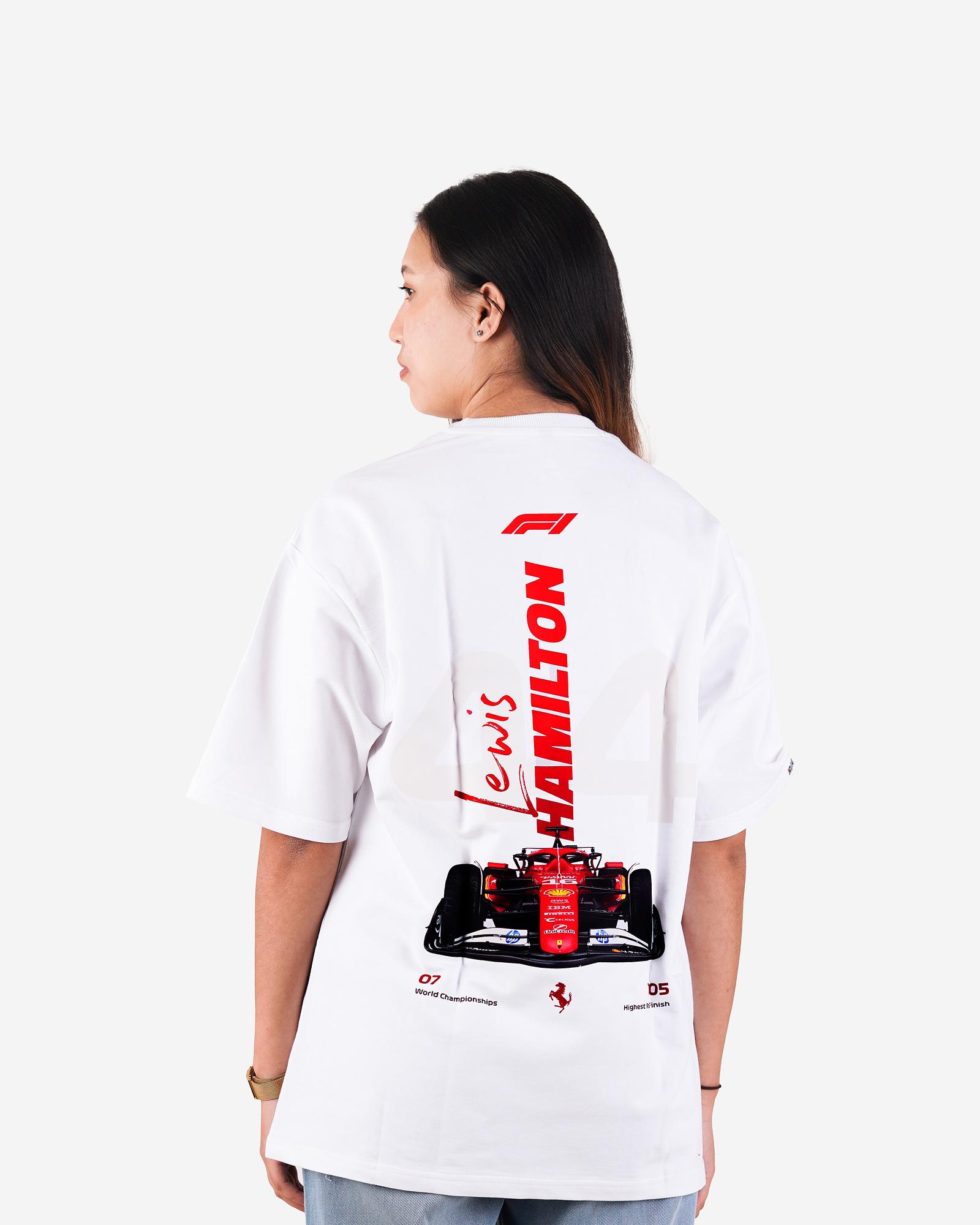 ₹ 628.95 MRP: ₹ 1699.0(63% OFF)Showcase speed and style with the Lewis Hamilton #44 oversized tee in white. Featuring his signature car design and stats, this tee merges F1 aesthetics with clean streetwear flair.