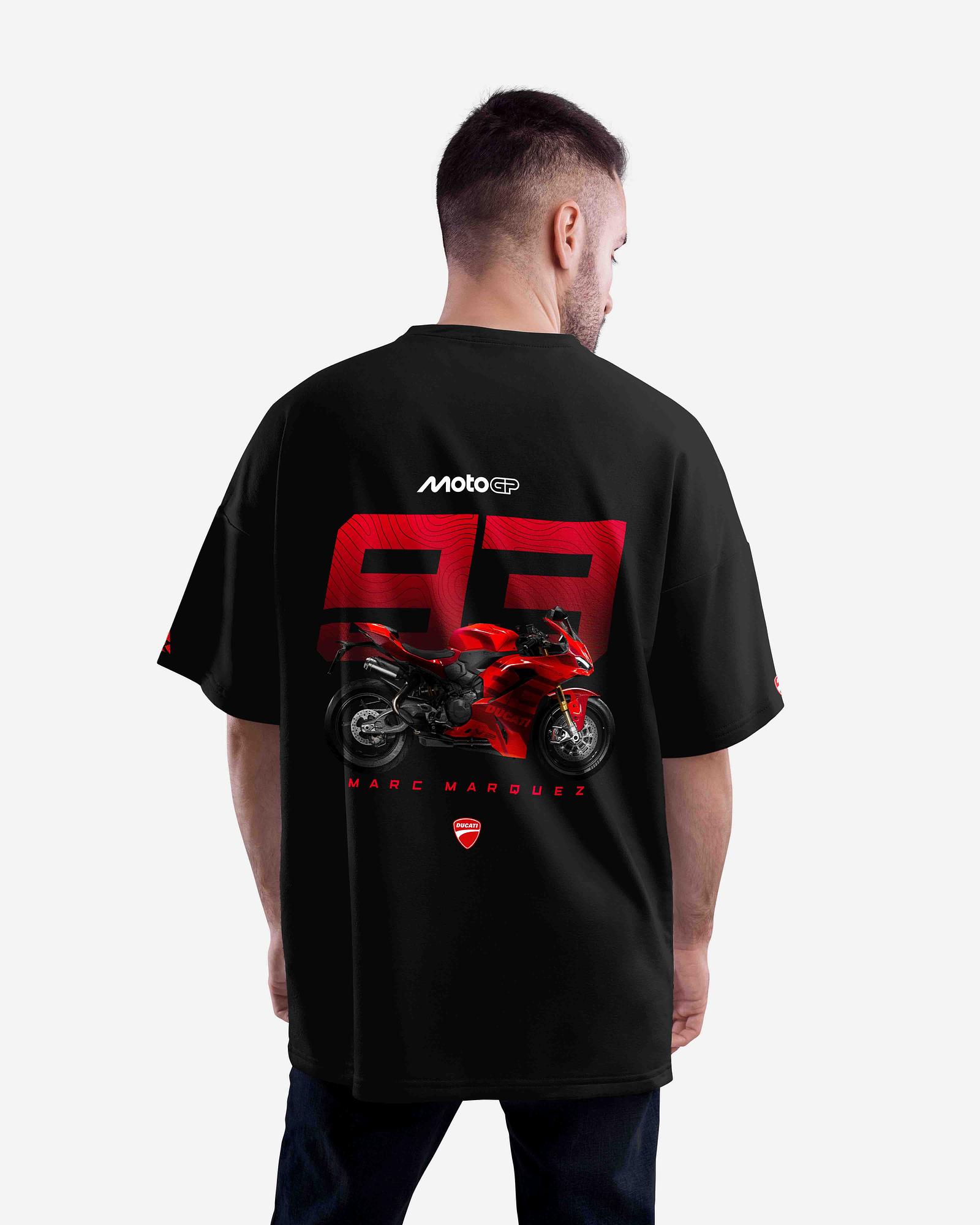 The Marc Márquez MM93 MotoGP Oversized Graphic T-Shirt is made for fans of high-speed racing and motorcycle culture. Featuring a bold back design with the iconic number 93 and a race bike graphic, this oversized T-shirt reflects the intensity of MotoGP racing. Designed for comfort and everyday wear, this black oversized T-shirt is a must-have for MotoGP enthusiasts.