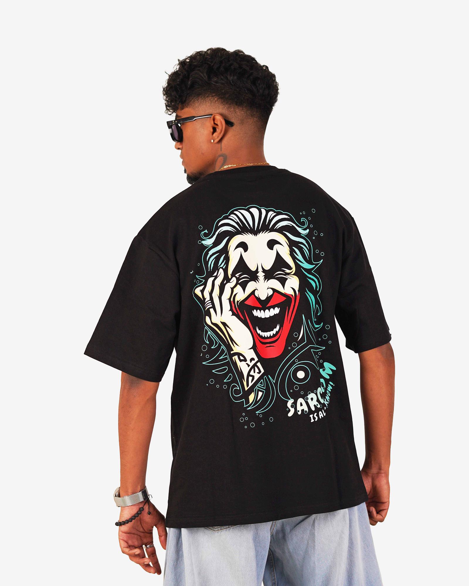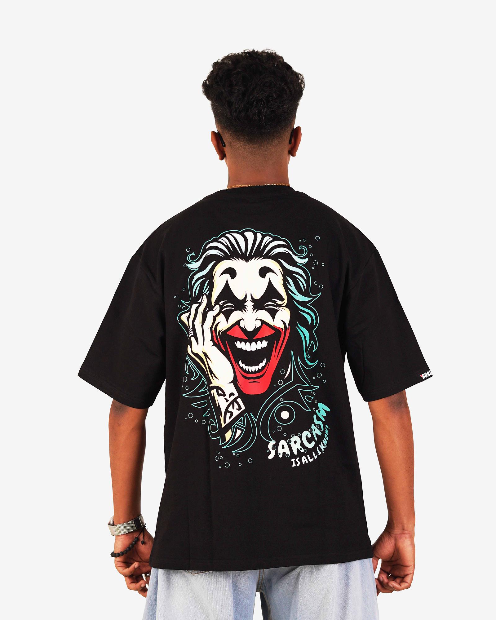 ₹ 427.0 MRP: ₹ 1699.0(75% OFF)Bring chaos and charisma to your wardrobe with the Wicked Joker oversized tee. Featuring a striking laughing face illustration and “Sarcasm is all I have” typography, this design screams bold energy and street attitude.