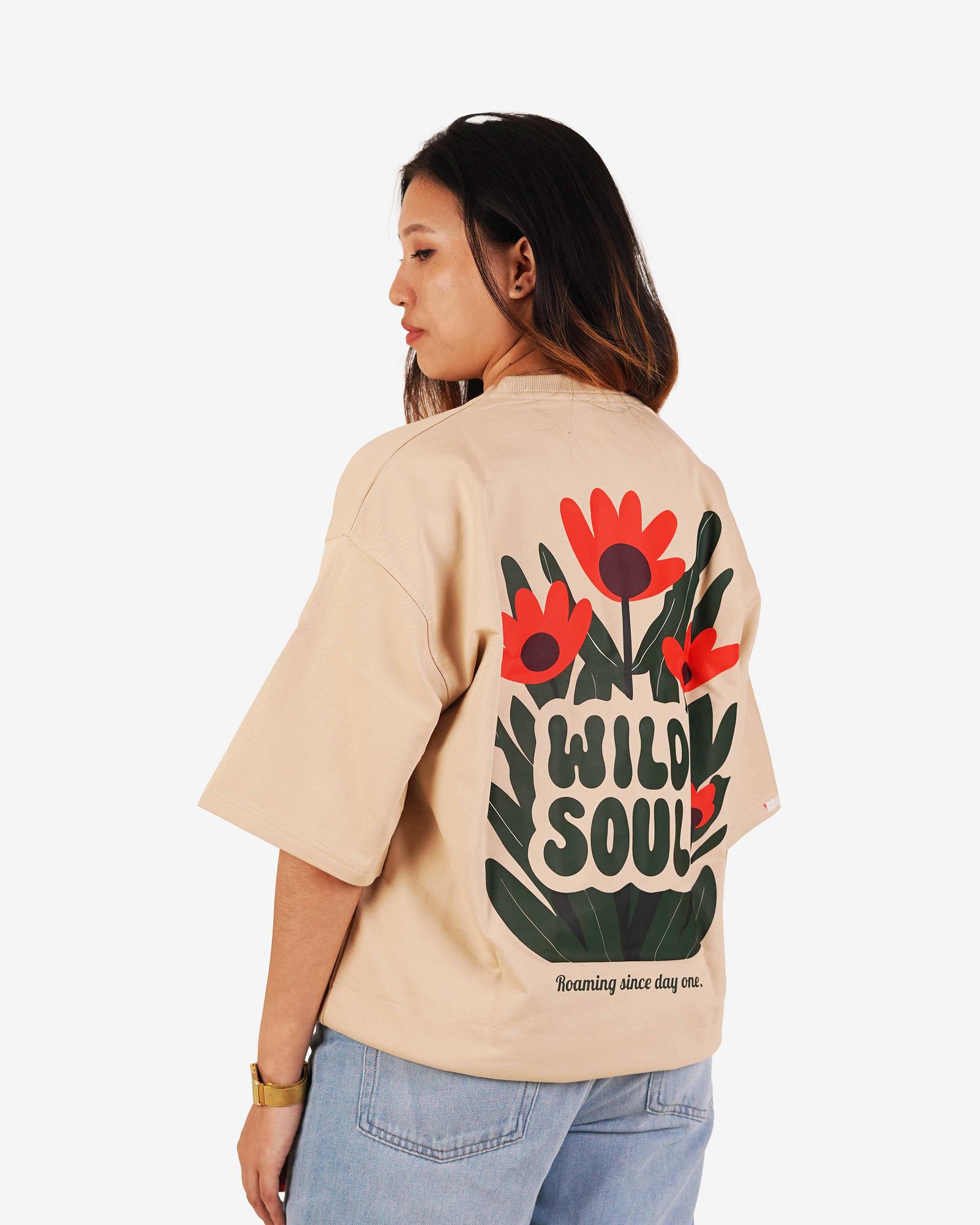 ₹ 628.95 MRP: ₹ 1699.0(63% OFF)Embrace your free spirit with the Wild Soul Oversized T-Shirt. With its bold floral design and relaxed fit, this tee is made for those who love to stand out and roam wild.